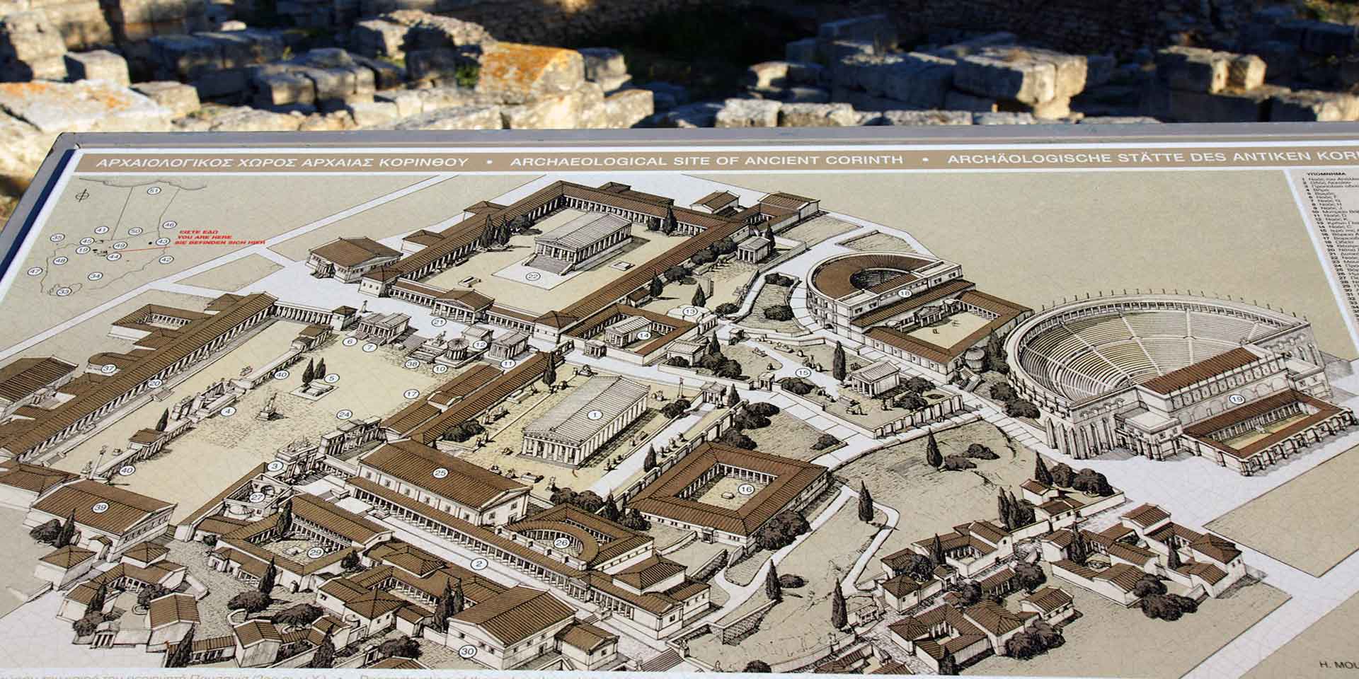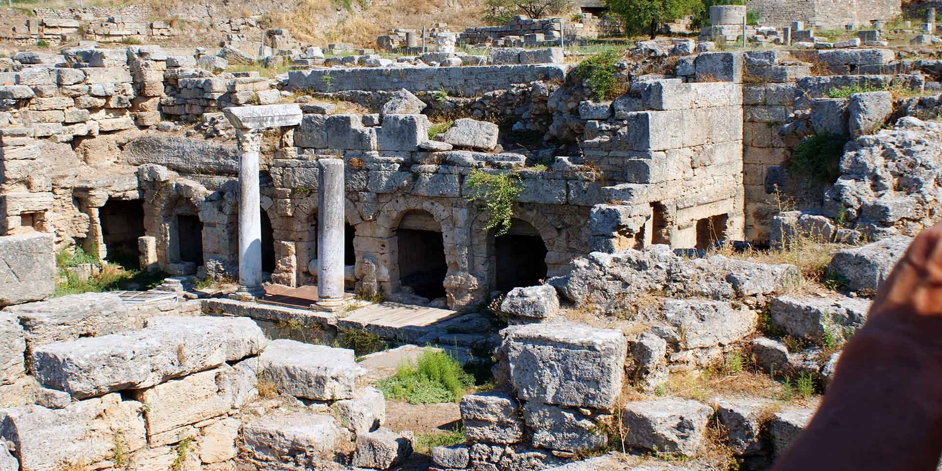 Known as the largest commercial and economic center of antiquity, but also an important philosophical, religious and artistic center It had 2 ports with roads.that connected them with the city center, with the various sanctuaries of the city and approximately 1,000,000 inhabitants at the time of its greatest prosperity during the 6th BC. century. Above the ancient city the acropolis of Corinth (575m), Acrocorinth, with walls 2,000m long, with sacred and public buildings dominates the landscape. The walls that surrounded the city started from the foot of the hill and reached the port of Lechaio in the Corinthian gulf. The apostle Paul visited and stayed in the city for about a year and a half in order to teach the word of God and to establish the first Christian church. That is why it is considered a place of worship for Christians from all over the world.