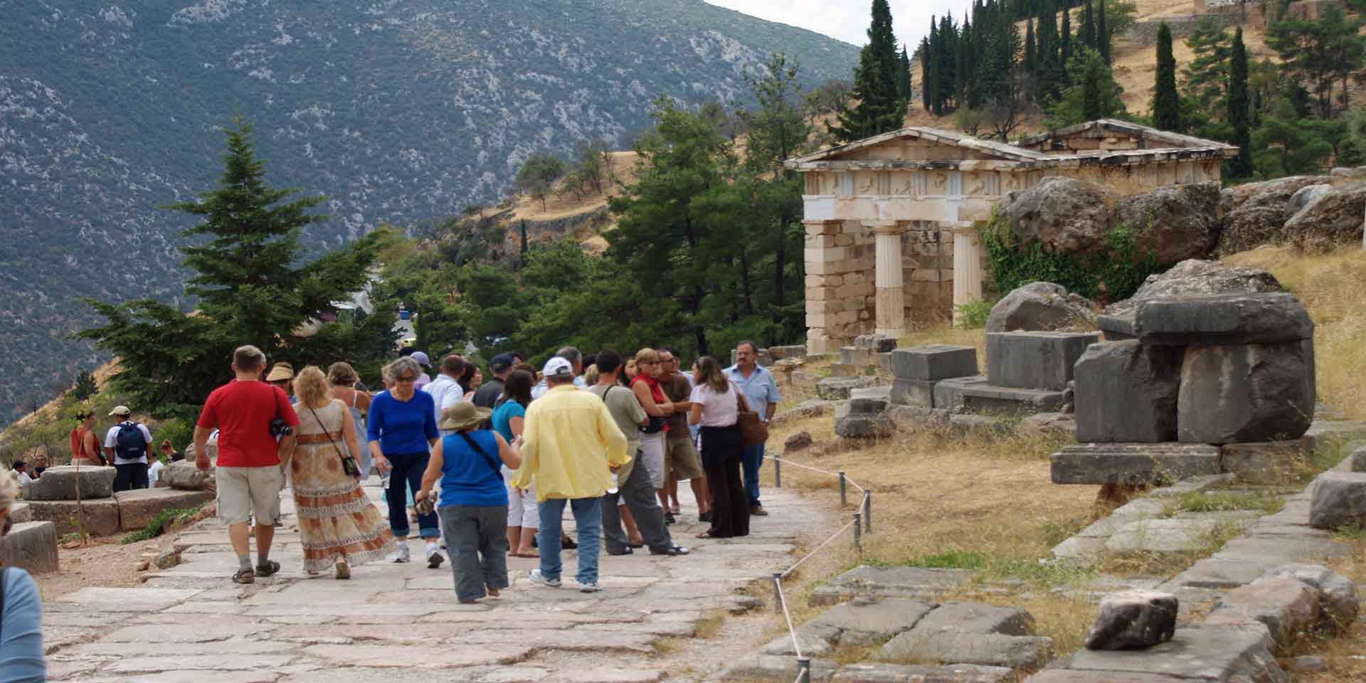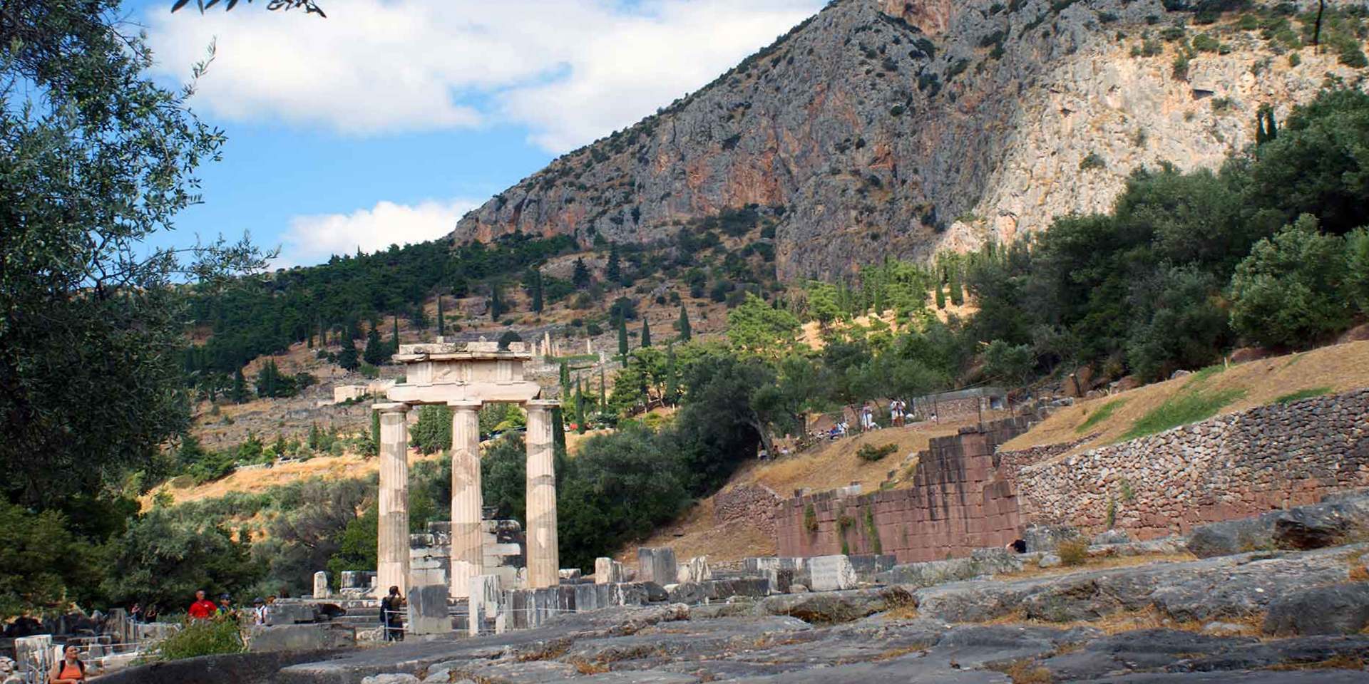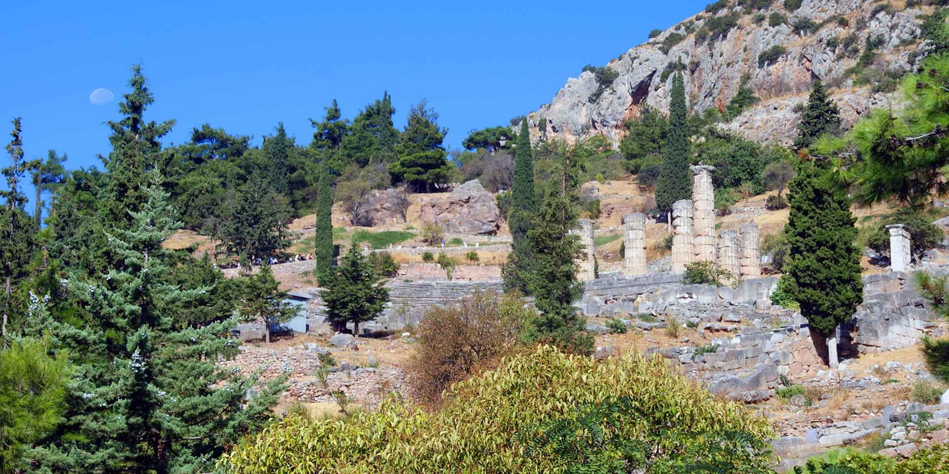 At the foot of Mount Parnassos, between the two giant rocks of Phaedriades, where the icy water of the sacred spring of Castalia gushes, the great sanctuary and oracle of Apollo was founded on the site of the prehistoric sanctuary of Gaea.
