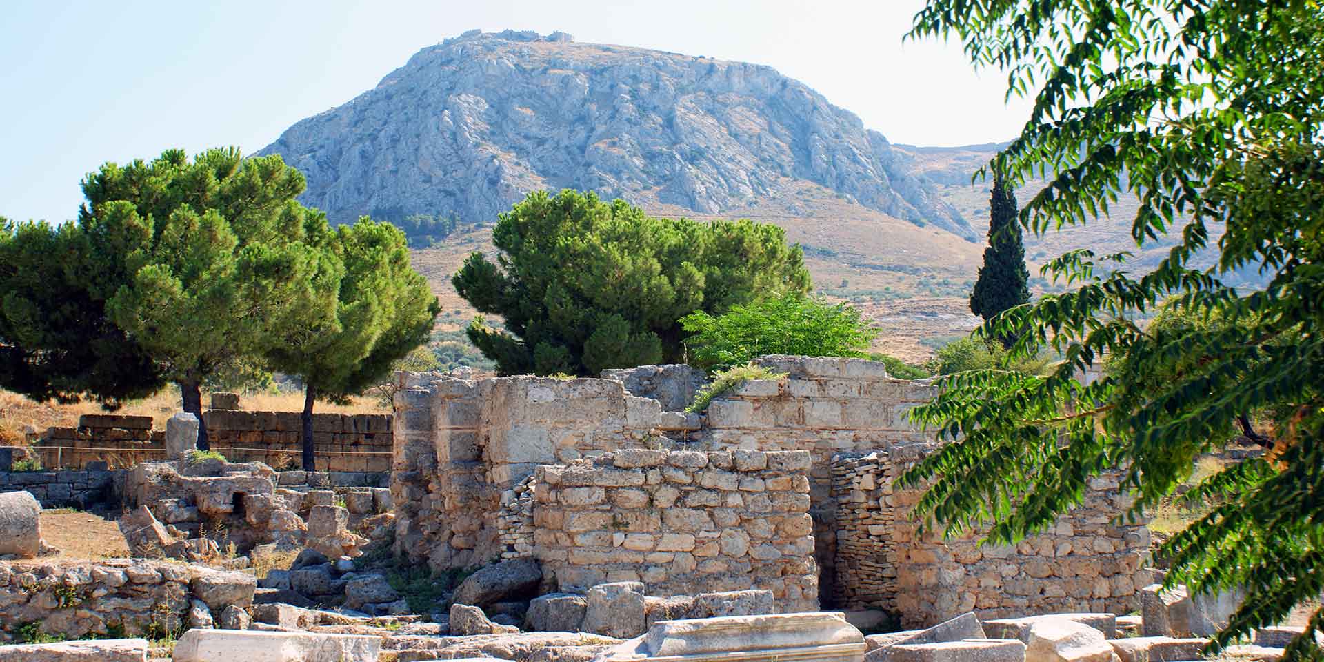 The walls that surrounded the city started from the foot of the hill and reached the port of Lechaio in the Corinthian gulf.