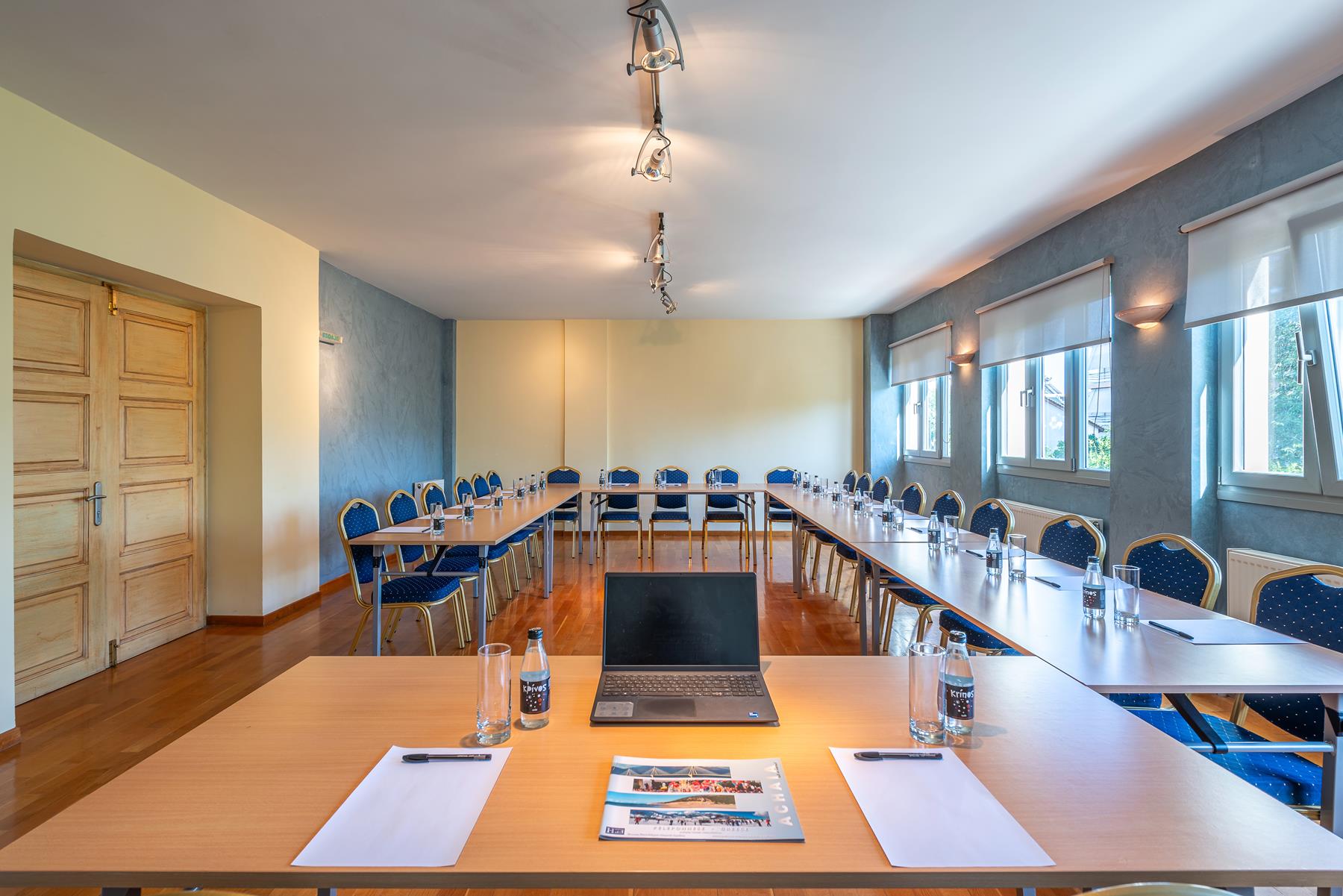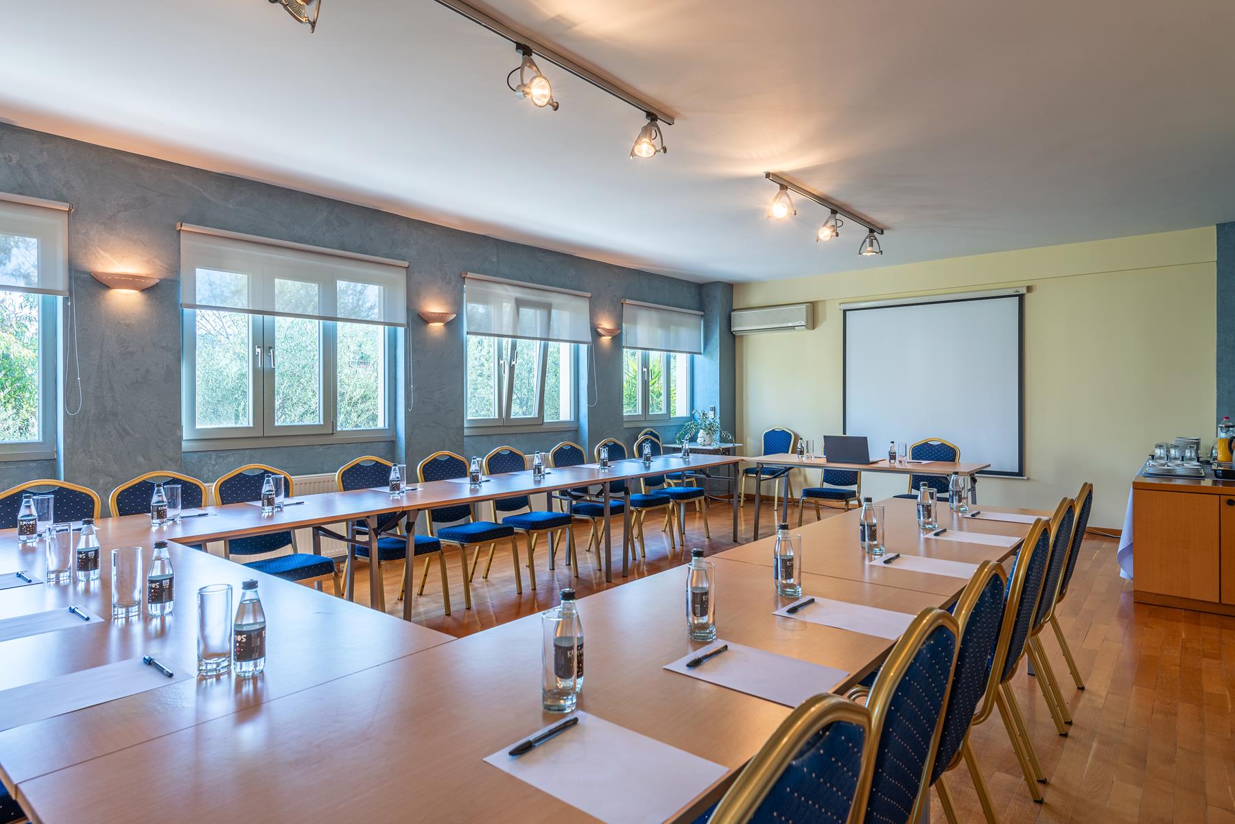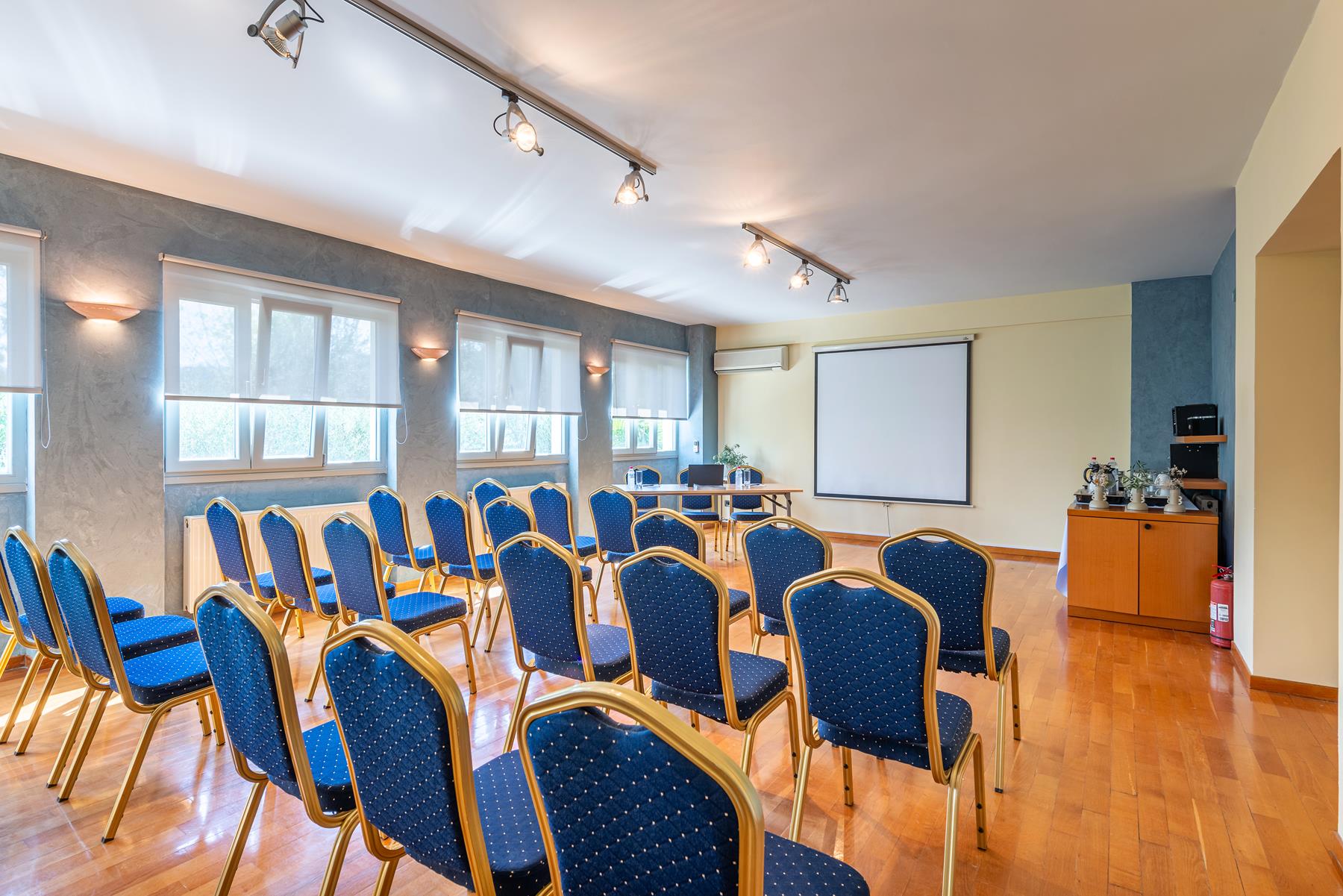 Particularly pleasant and functional space with natural light and ventilation, having the capacity to accommodate up to 45 people and ensuring the best conditions for a successful event. It has the necessary technical equipment and is flexibly configured according to the needs of each activity. It is suitable for meditation, relaxation and calm, especially when it comes to alternative and therapeutic seminars and other self-awareness workshops. The reception area and the snack-bar of the hotel being nearby, you have the possibility for coffee breaks with coffee, juice, soft drinks and light snacks while enjoying the inviting and charming environment of the pool. Our experienced staff is always at your service to satisfy your every wish, contributing to the success of your activity.